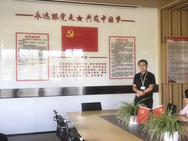 黨委書記、董事長昝杰亮同志首先對新黨員表示了衷心的祝賀,同時對新黨員提出了要求:一是組織入黨與思想入黨相統(tǒng)一,加強黨的理論學習,二是在行為上以黨員標準要求自己,爭做優(yōu)秀黨員;其次,希望老黨員起好傳幫帶、樹表率的作用,不忘初心,砥礪前行;最后,借“七一”黨的生日之際,祝各位同事工作順利,更好地為黨的事業(yè)添磚加瓦。