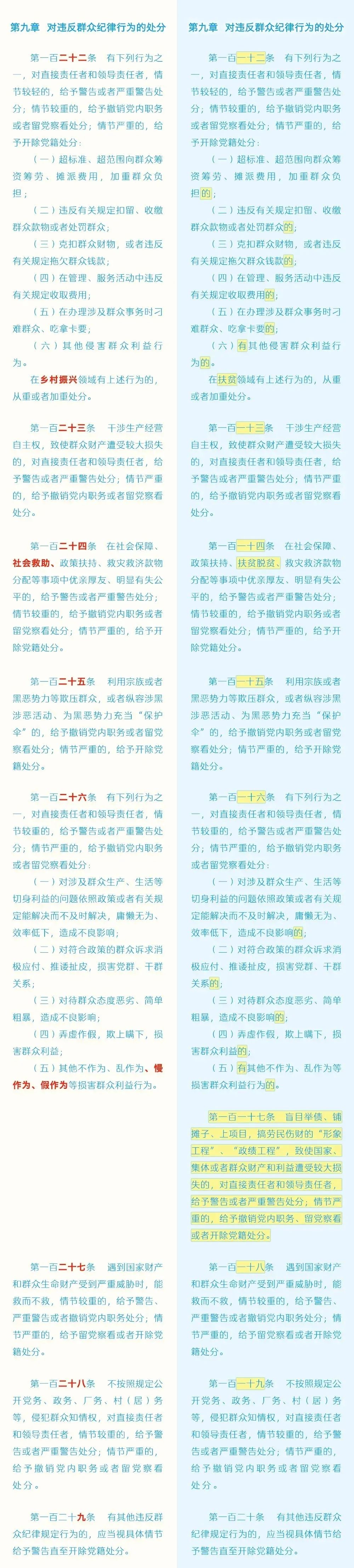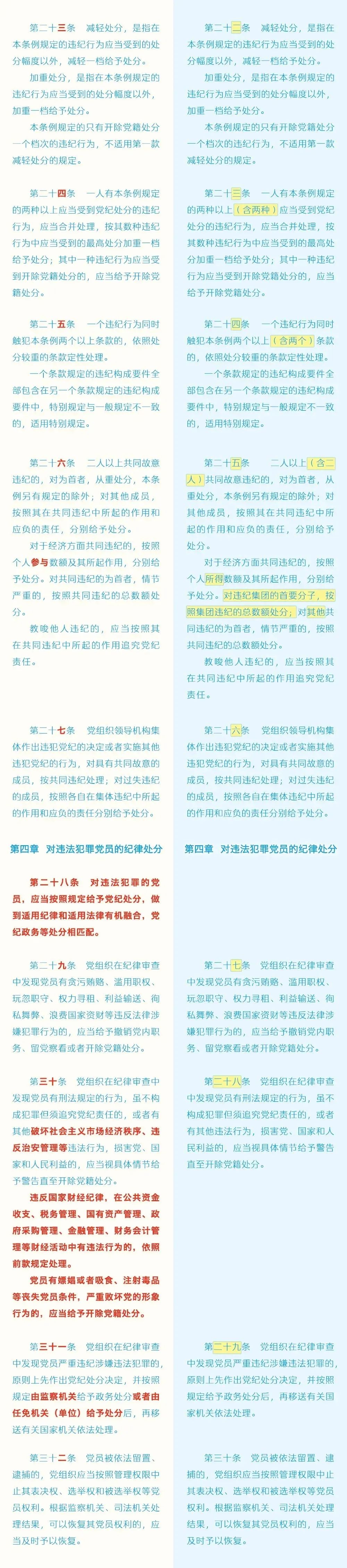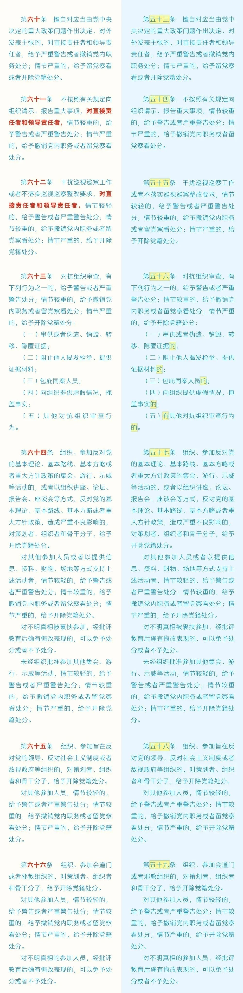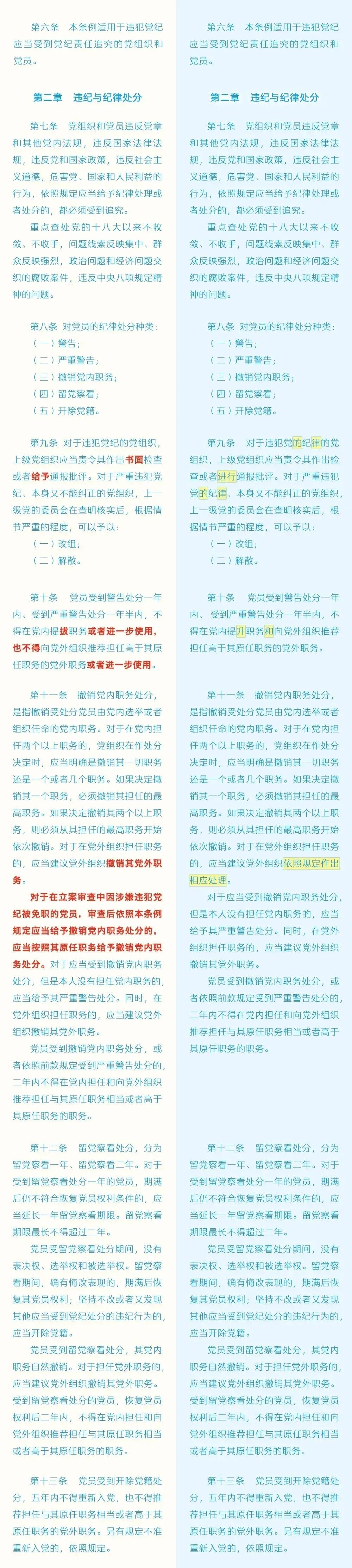 《中國(guó)共產(chǎn)黨紀(jì)律處分條例》修訂前后對(duì)照