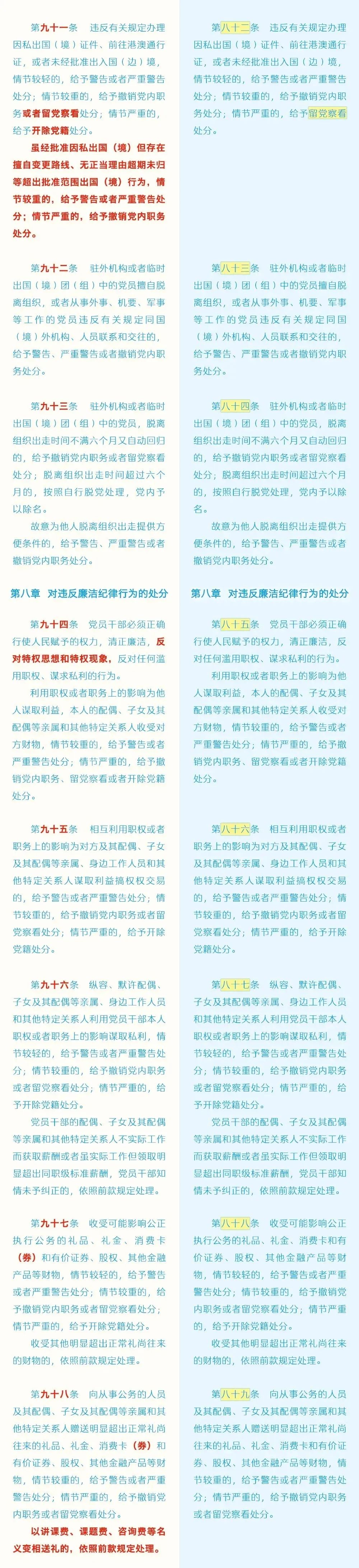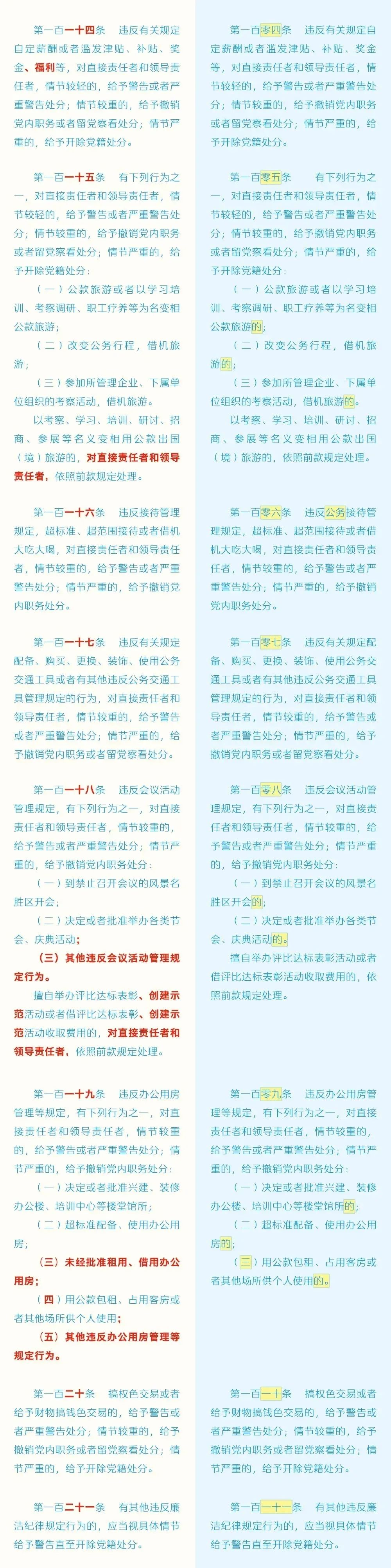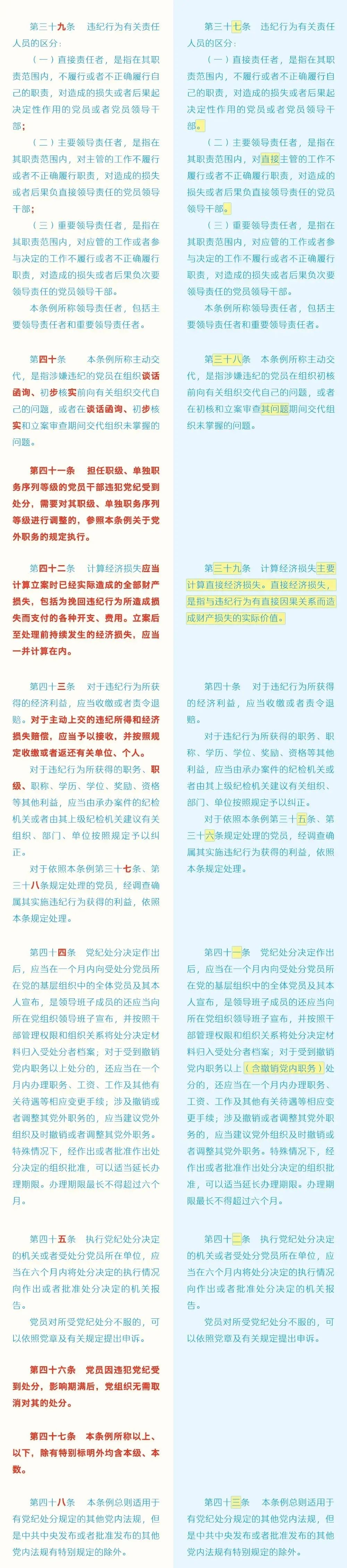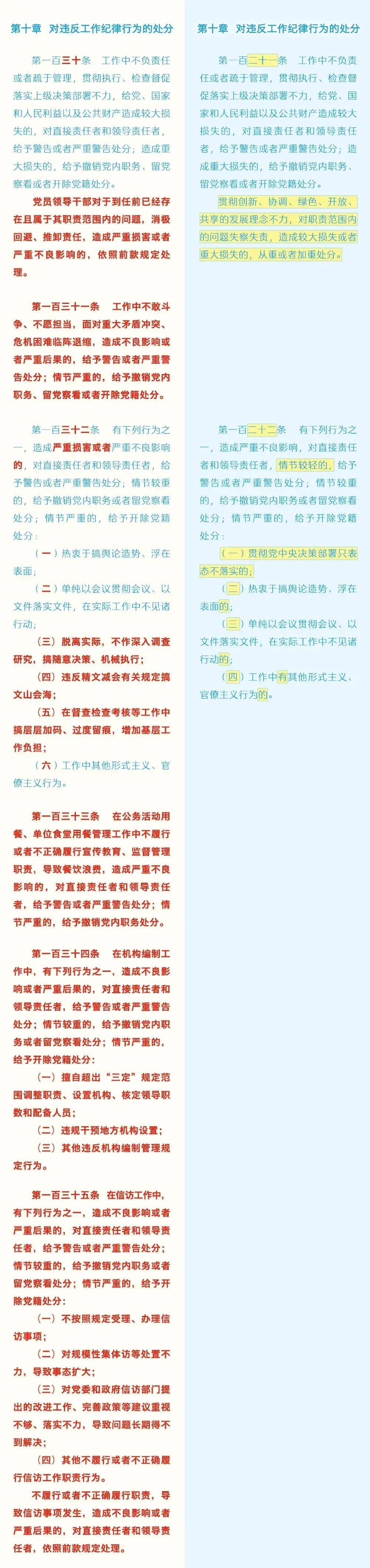 《中國(guó)共產(chǎn)黨紀(jì)律處分條例》修訂前后對(duì)照