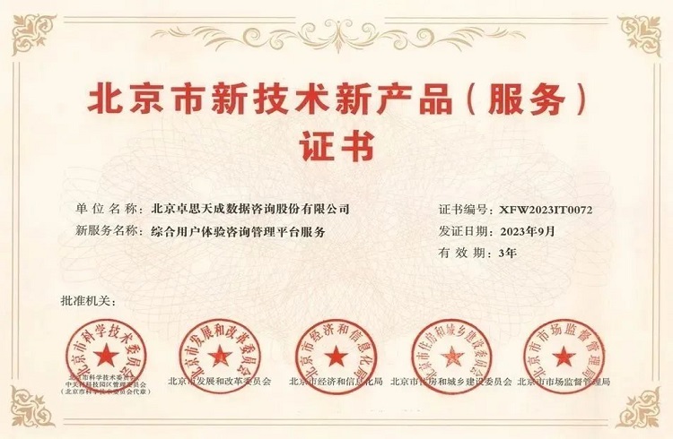 卓思獲“北京市新技術(shù)新產(chǎn)品(服務(wù))”認(rèn)定