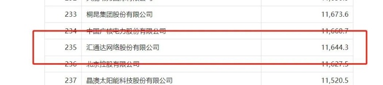 7月25日,2024年《財富》中國500強(qiáng)榜單揭曉,匯通達(dá)網(wǎng)絡(luò)股份有限公司(9878.HK)以2023年營收逾116.44億美元上榜,位列第235名。