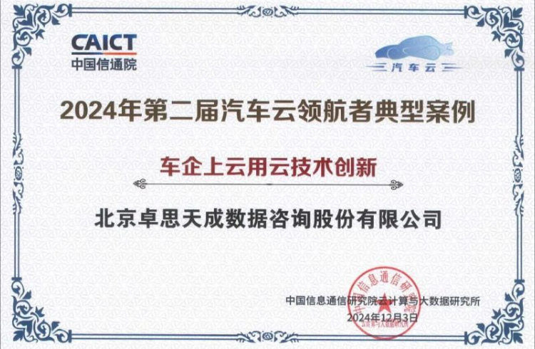 近日,中國(guó)信通院在京舉行“2024全球數(shù)字經(jīng)濟(jì)大會(huì)云·AI·計(jì)算國(guó)際合作論壇”,汽車云領(lǐng)航者典型案例評(píng)選結(jié)果同期發(fā)布。張家口產(chǎn)業(yè)投資控股集團(tuán)(簡(jiǎn)稱:張家口產(chǎn)投)被投企業(yè)——國(guó)內(nèi)頭部CEM客戶體驗(yàn)管理平臺(tái)北京卓思天成數(shù)據(jù)咨詢股份有限公司(簡(jiǎn)稱:卓思)“基于知識(shí)圖譜技術(shù)驅(qū)動(dòng)的新一代智能化客戶體驗(yàn)云平臺(tái)”成功入選“2024年第二屆汽車云領(lǐng)航者典型案例”,成為6家上榜企業(yè)之一,一同入選的還有一汽豐田、長(zhǎng)安汽車、智己汽車、騰訊云、簡(jiǎn)單云。