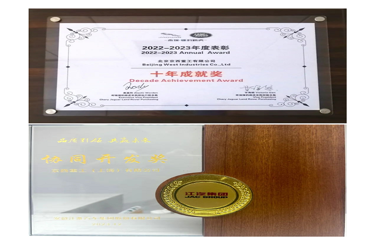 喜訊!京西集團(tuán)連獲奇瑞捷豹路虎“十年成就獎(jiǎng)”,江淮汽車集團(tuán)“協(xié)同開發(fā)獎(jiǎng)”