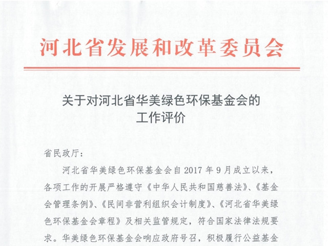 河北省發(fā)改委對華美綠色環(huán)?;饡氖碌墓婀ぷ鹘o予肯定性評價