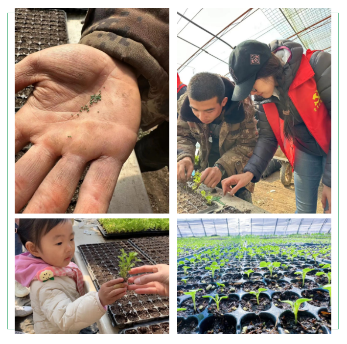認識種子,學習如何育苗,把土壤澆濕,用鏟拍打,劃出一條條線,開始移栽,每一個步驟都是新奇而充滿希望的。