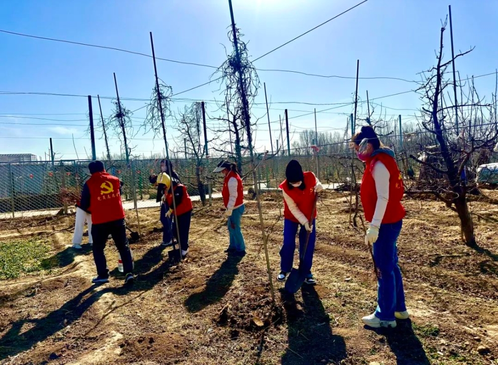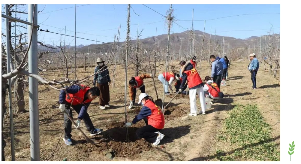經(jīng)過半天的辛勤勞動,原本光禿禿的土地上,一排排新栽的樹苗昂然挺立,為果園增添了一抹生機。